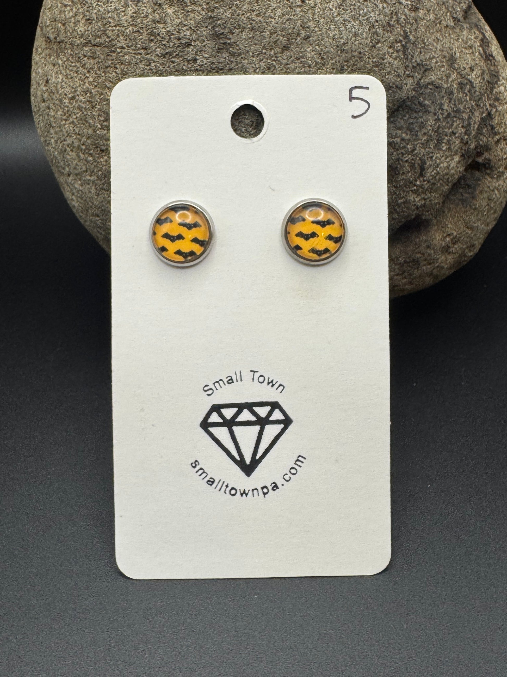 Fly into spooky season with these Bat Print Stud Earrings! Featuring a playful bat pattern, these lightweight studs are the perfect accessory for Halloween lovers and nocturnal souls alike. Cute, creepy, and effortlessly cool, they add a touch of spooky charm to any outfit.