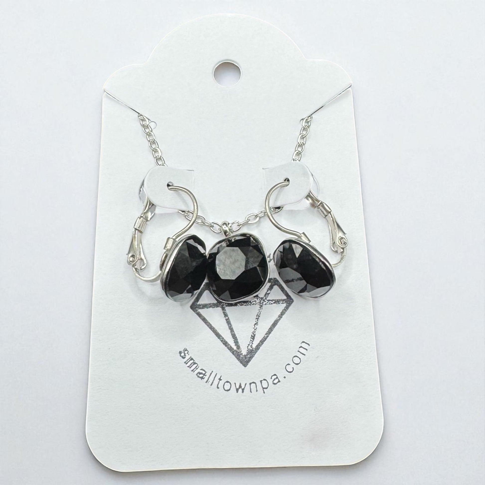 Turn heads with this striking earring and necklace set, featuring bold black faceted stones that catch the light with every move. Crafted from high-quality stainless steel and luxuriously plated in 18-karat gold, this set offers both timeless elegance and everyday durability.