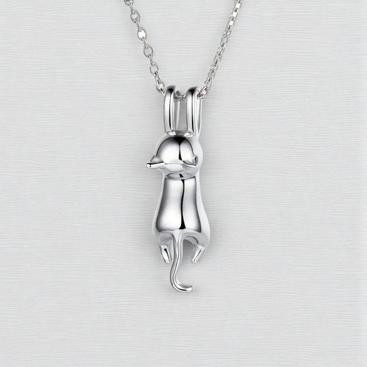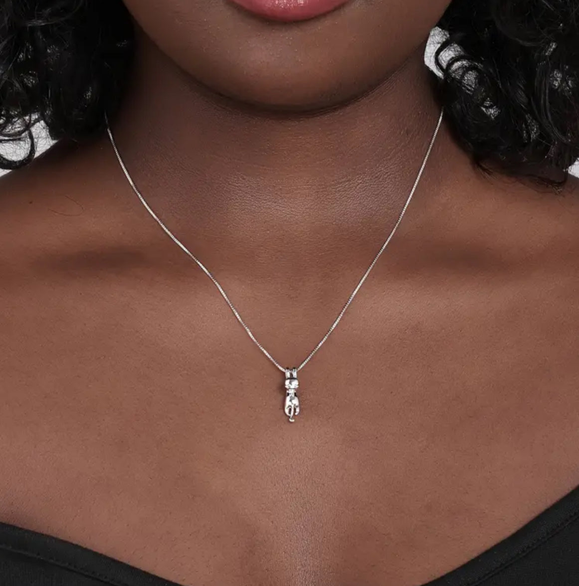 This delicate and playful Cat Necklace features an adorable dangling feline charm in 925 Sterling Silver. Purrfect for cat lovers with a love for subtle styles.