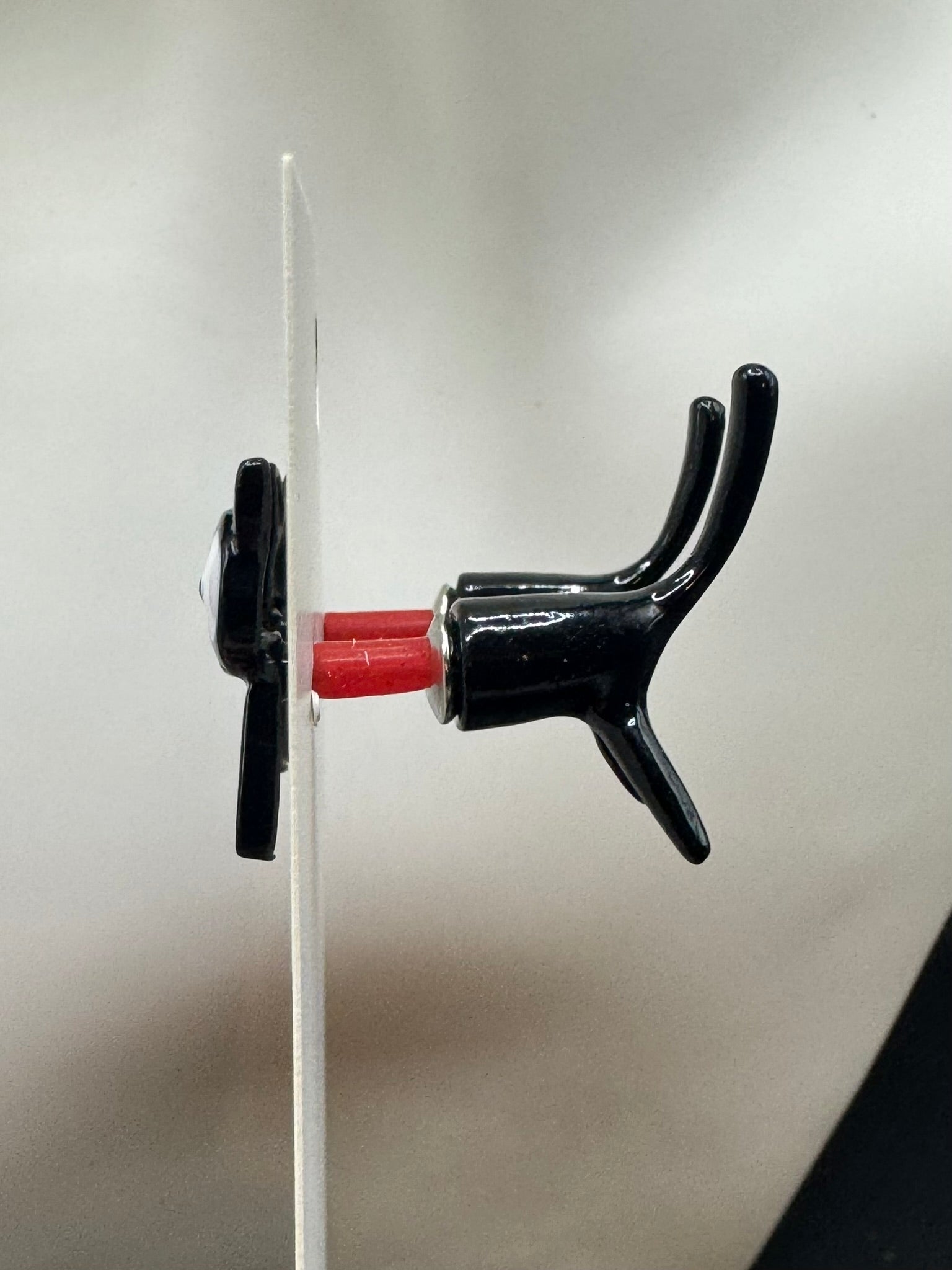 Add a touch of mystery and charm to your look with these whimsical Cat Through Ear Studs. Designed to look like a sleek black cat is slinking through your earlobe, this playful illusion creates a head-turning effect from every angle. One part of the earring features the cat's curious head and front paws, while the other shows its tail and hind legs, giving the impression it's mid-prowl right through your ear.
