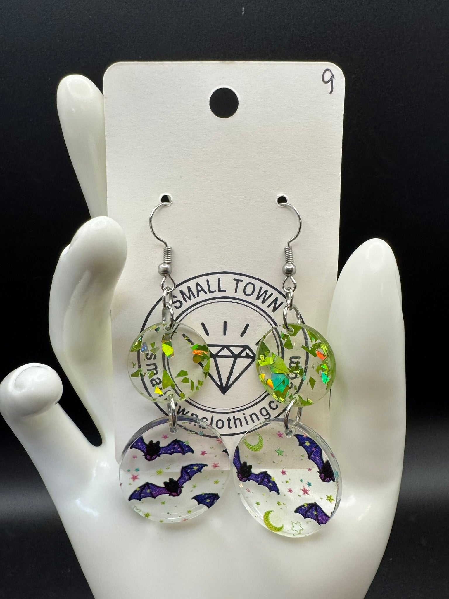 Add a playful twist to your spooky style with these Confetti Bat Dangle Earrings! Featuring cheerful, star and moon confetti-filled bats that dance and sway with every move, these earrings bring a burst of Halloween fun and vibrant energy to any outfit.