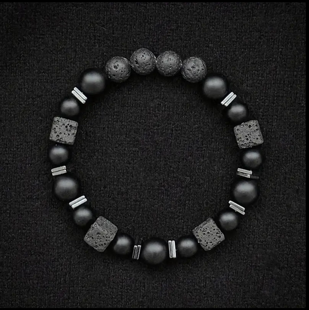 Elevate his style with purpose. Crafted with sleek cube-cut Black Onyx stones, this bracelet blends bold aesthetics with powerful intention. Known as a grounding stone, Onyx offers emotional balance and inner strength, shielding against negative energy and promoting resilience.