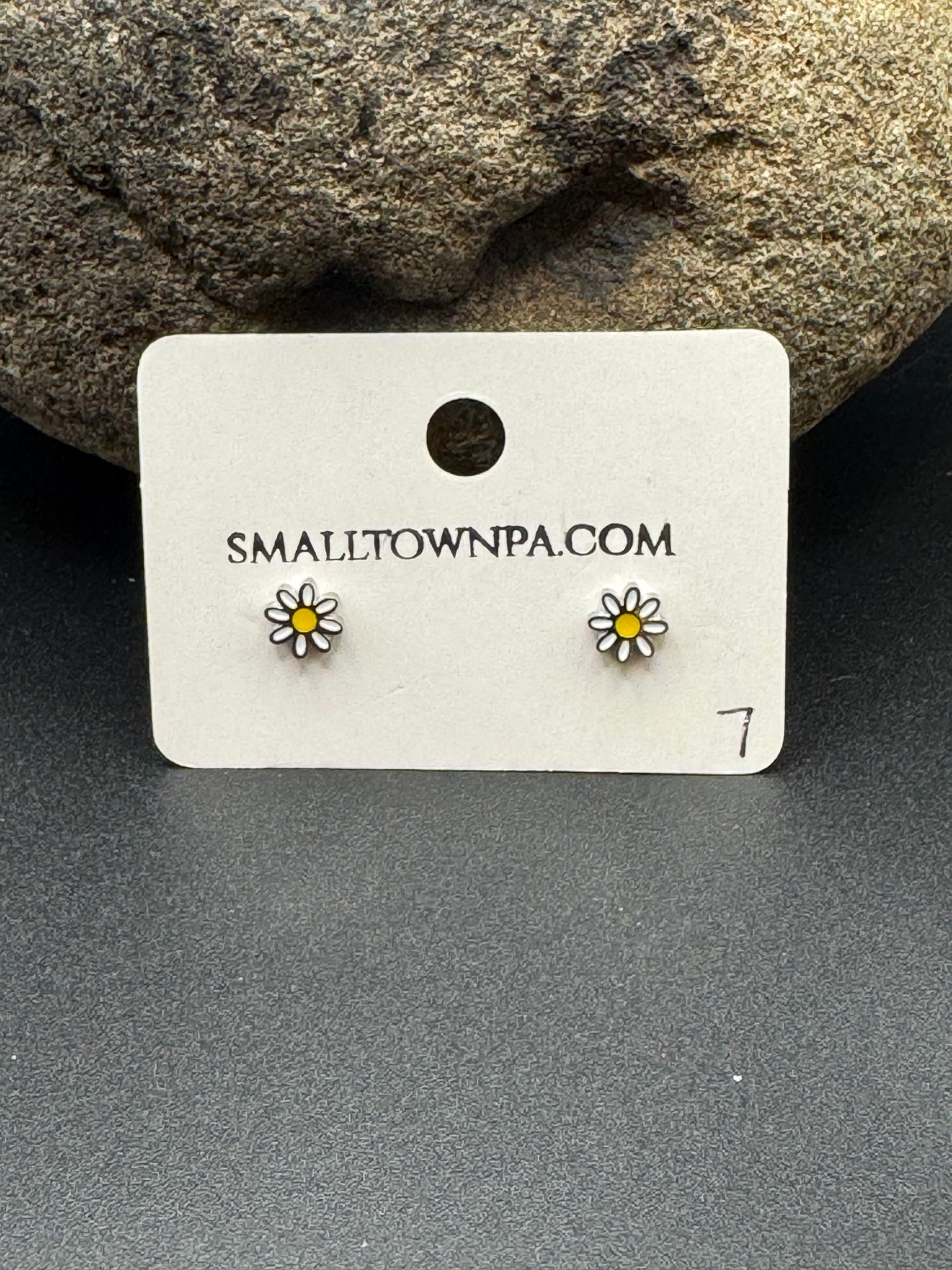 These small daisy stud earrings are delicate and charming, featuring a simple yet elegant design. The earrings showcase a petite daisy with soft, rounded petals. The petals are polished to a smooth finish, giving the flowers a natural, cheerful vibe.