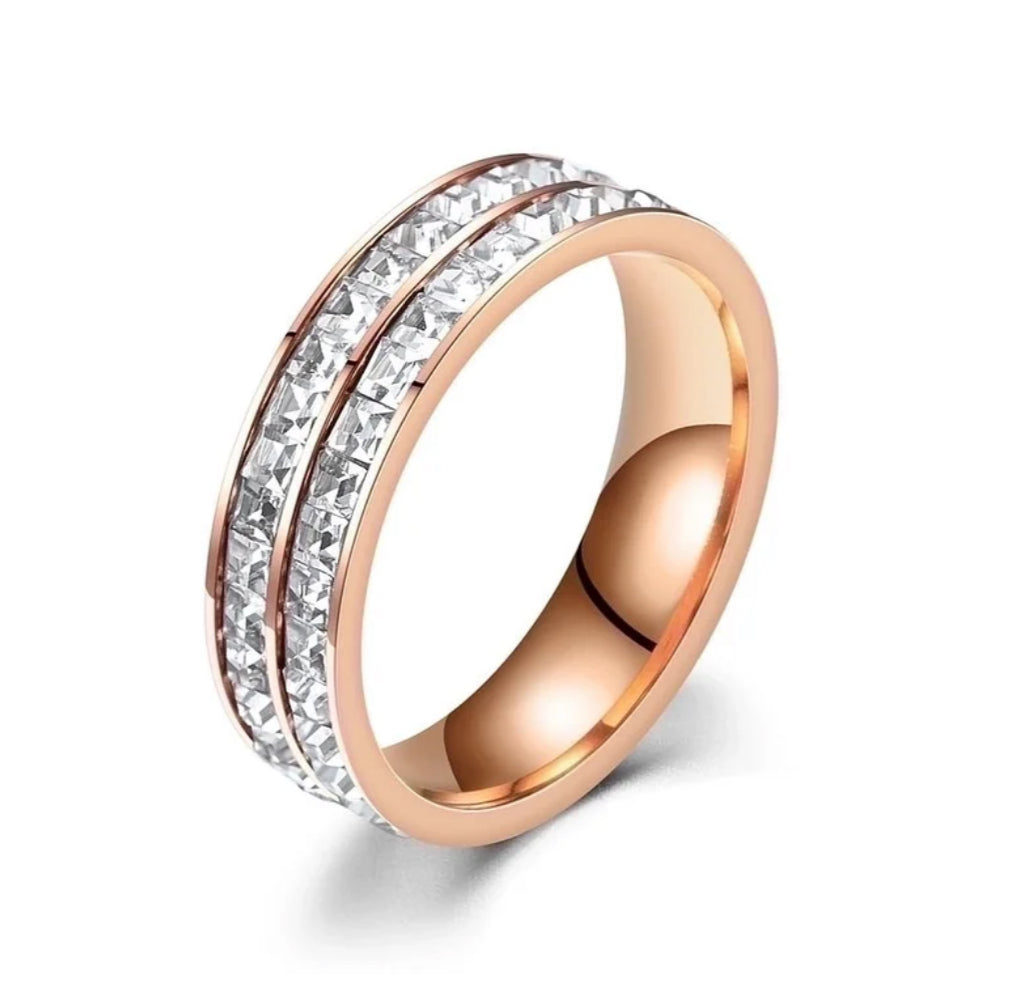 Make a bold statement with this sleek and stylish double studded ring crafted from high-quality stainless steel. Designed to stand out, this ring features two parallel rows of shimmering faux diamonds, offering the perfect balance of modern edge and classic sparkle.