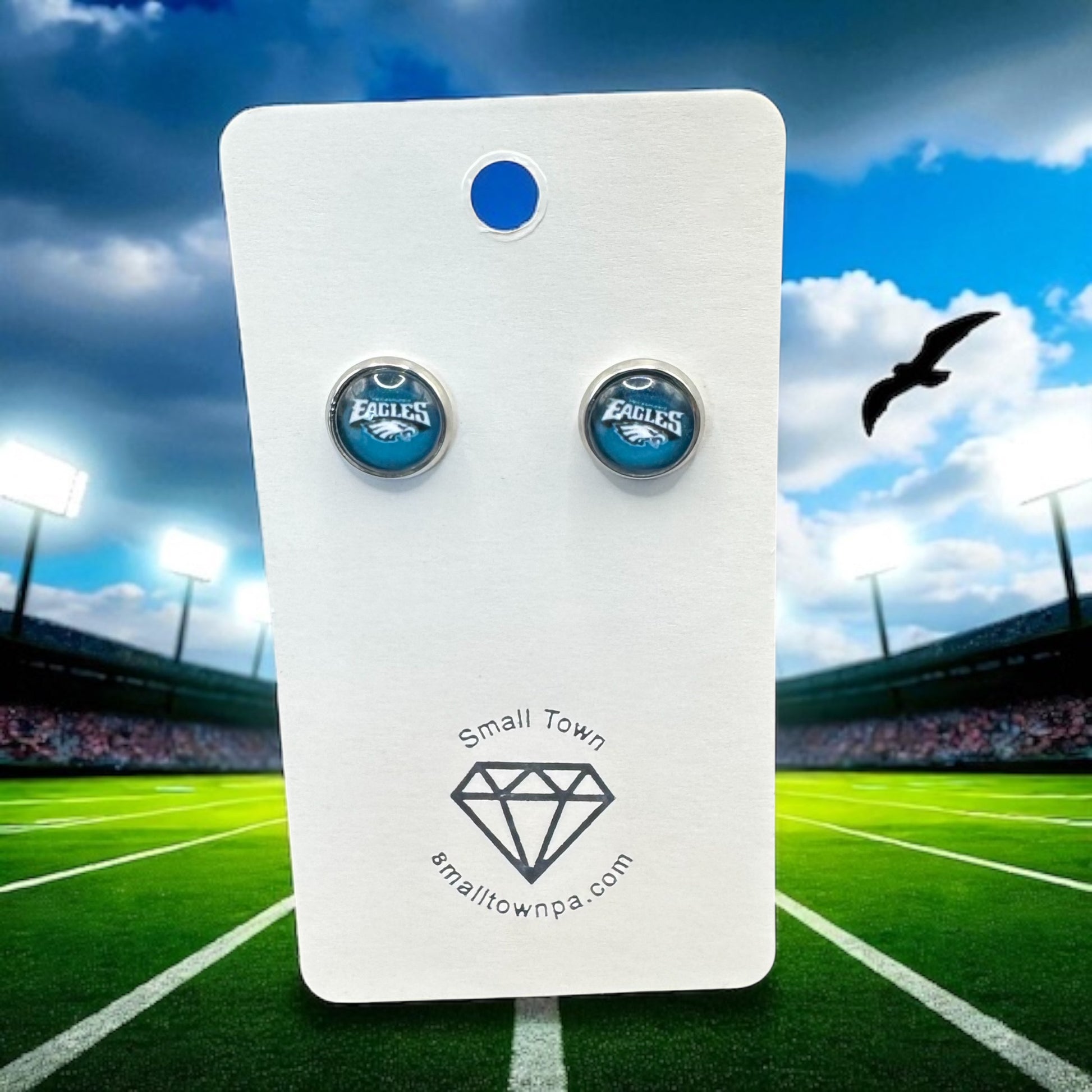 Fly high in style! These Eagles inspired stud earrings are the perfect way to show your team pride! Lightweight, bold, and perfect for every fan - from kickoff to the final whistle!