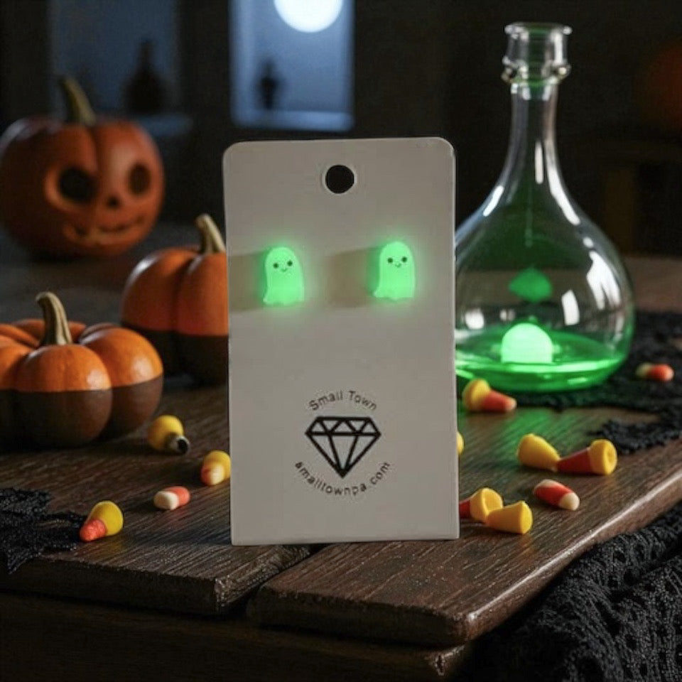 Light up the night with these Glow-in-the Dark Ghost Stud Earrings - tiny phantoms that haunt your lobes with charm! Handcrafted with a soft, eerie glow, these ghosties are perfect for adding a little boo-tiful flare to your Halloween look (or for keeping the spooky spirit alive all year long).