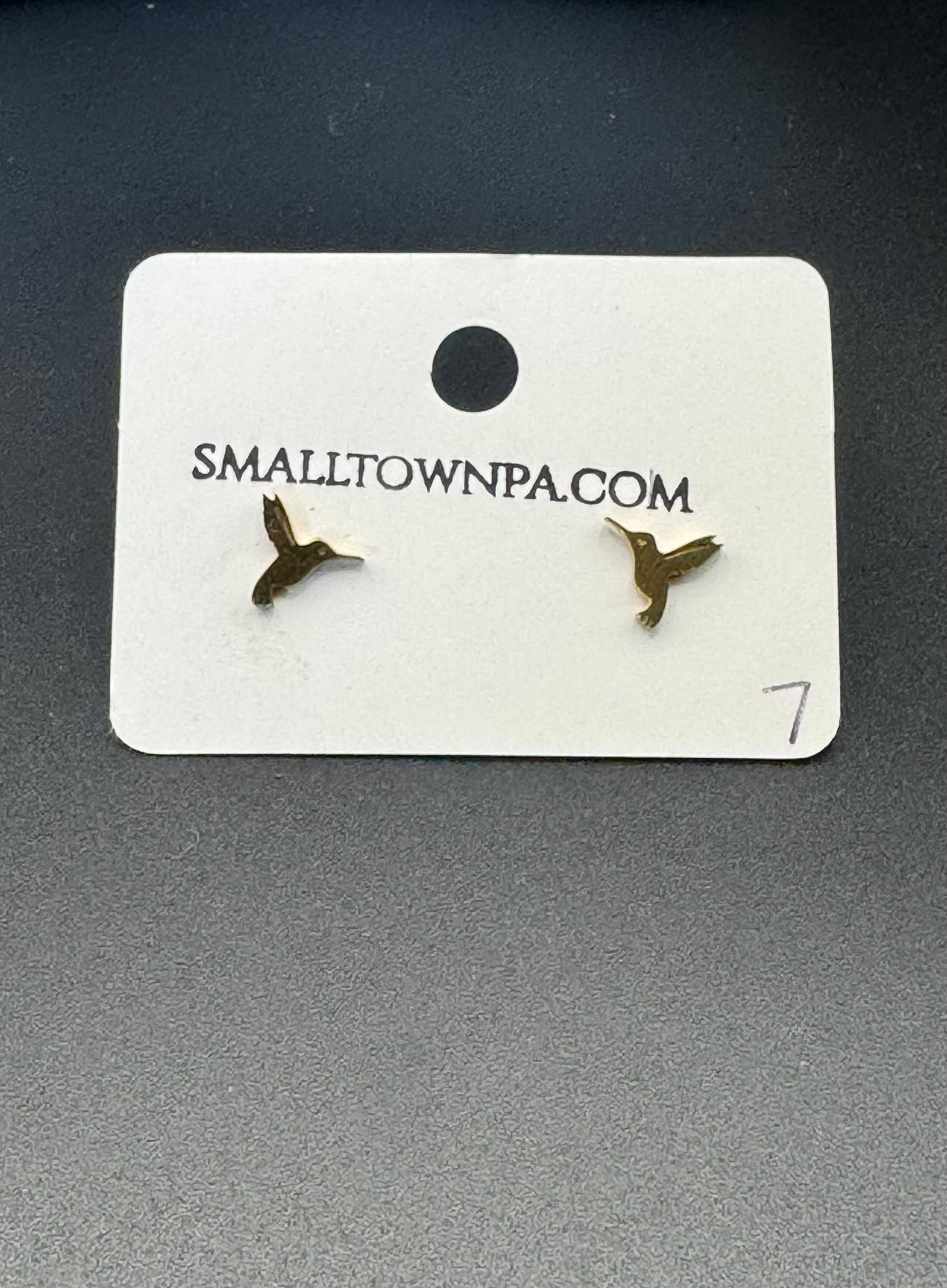 Graceful and full of charm, these golden hummingbird stud earrings capture the delicate beauty of one of nature’s most enchanting creatures. Crafted with fine detail and a radiant gold finish, they add a touch of elegance and whimsy to any outfit. Lightweight and easy to wear, they're perfect for nature lovers, bird enthusiasts, or anyone who appreciates unique, meaningful jewelry.