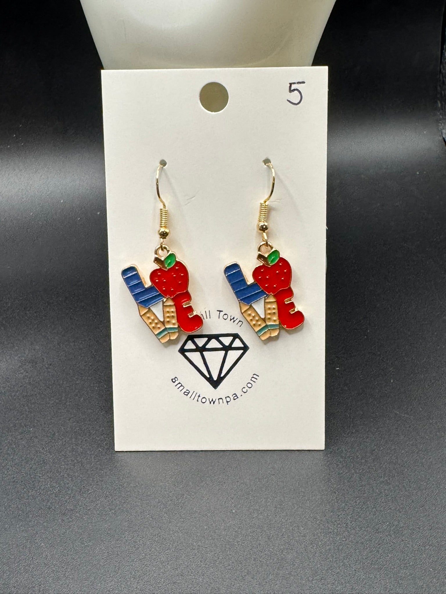 Spread love and learning with these charming Love Dangle Earrings, where the “O” is cleverly replaced by a bright red apple! Perfect for teachers, educators, and anyone who loves school-inspired style, these earrings combine heartfelt sentiment with a fun, classroom-ready twist.