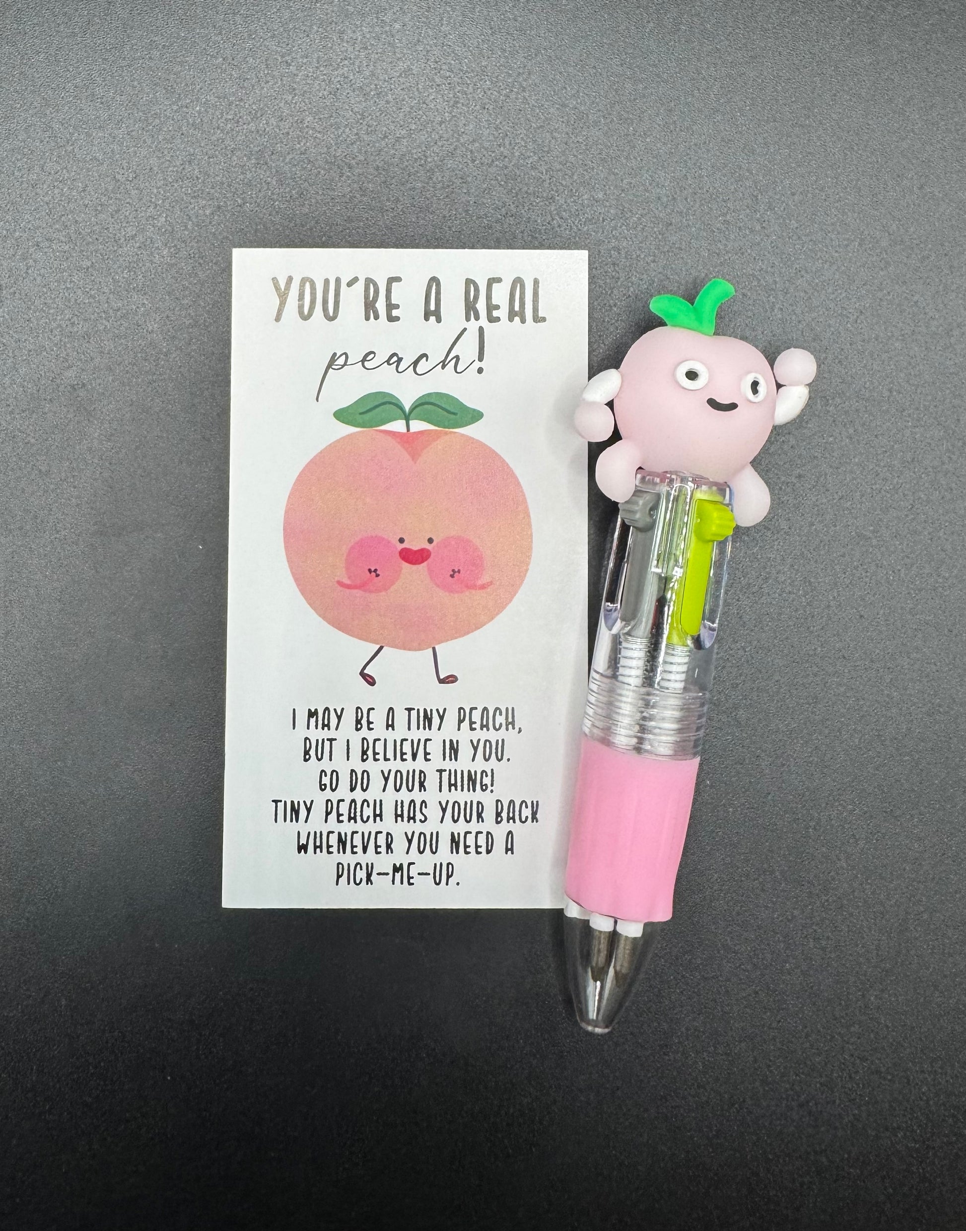 Sweet, simple, and full of positivity! This Mini Peach Pen and Motivational Card set is the perfect little pick-me-up for teachers, students, coworkers, or friends. Featuring a cute peach-themed mini pen and an encouraging card, it's a thoughtful way to brighten someone’s day — or your own!