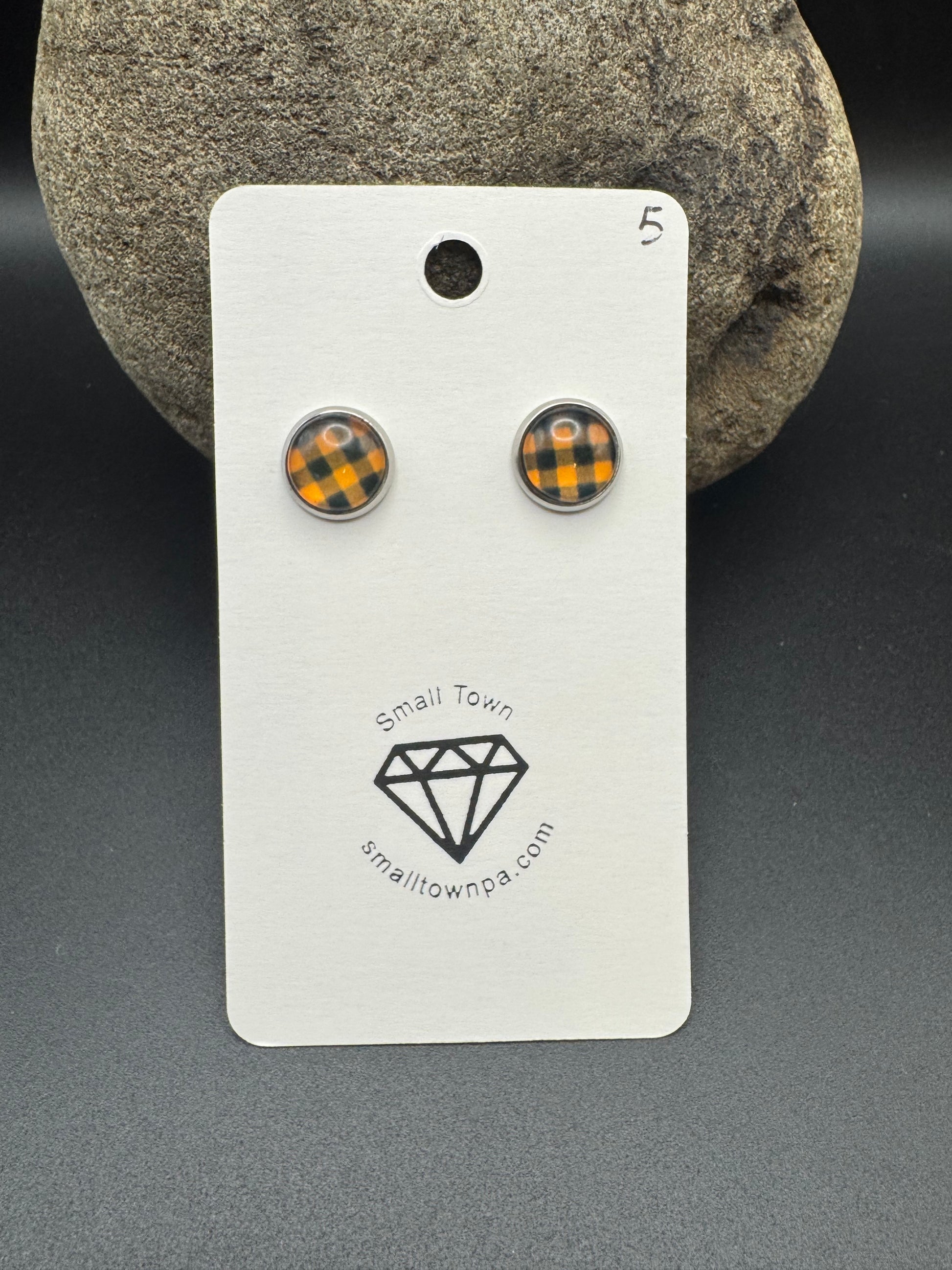 Orange and Black Plaid Stud Earrings