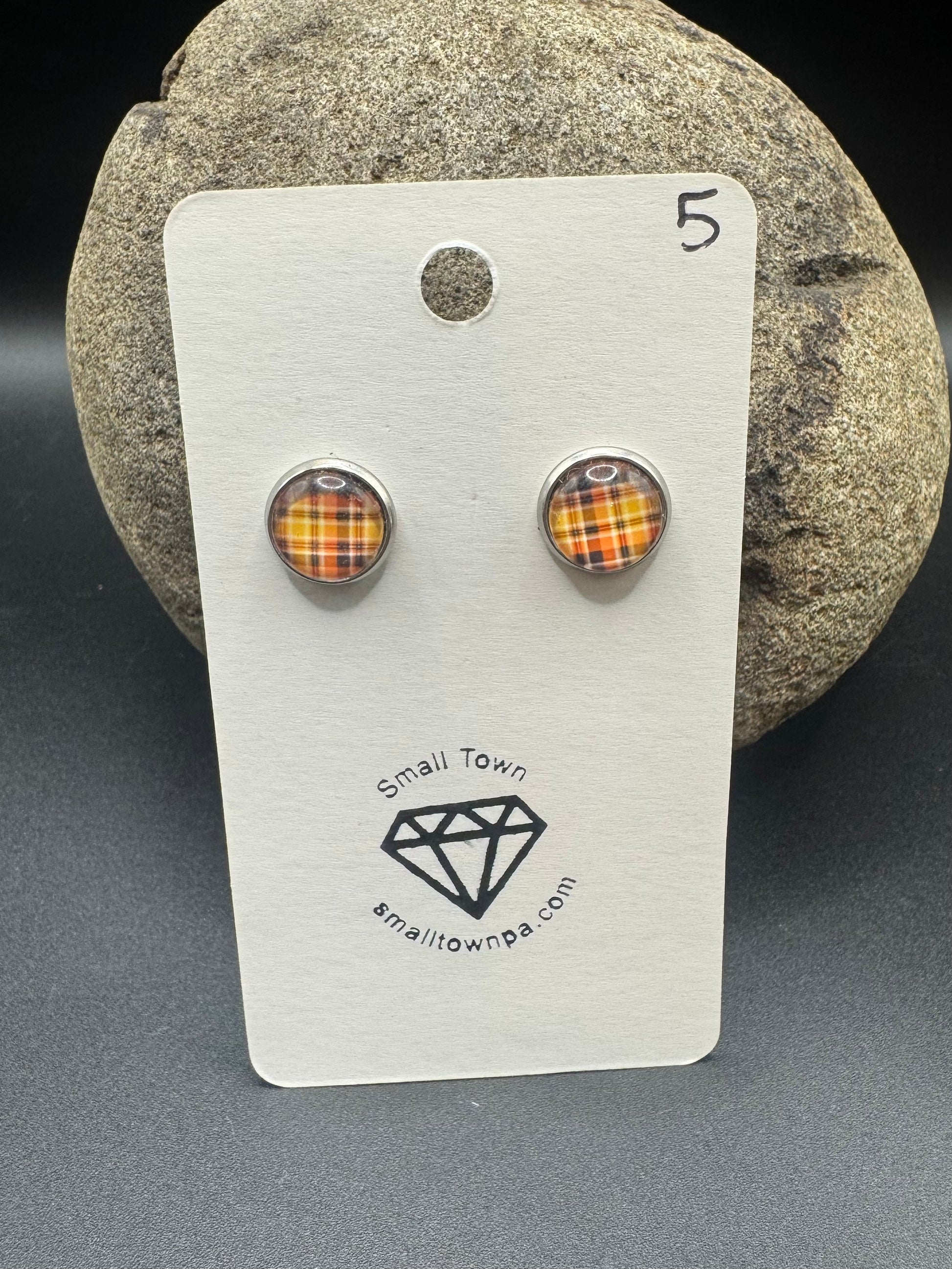 Orange Plaid Stud Earrings