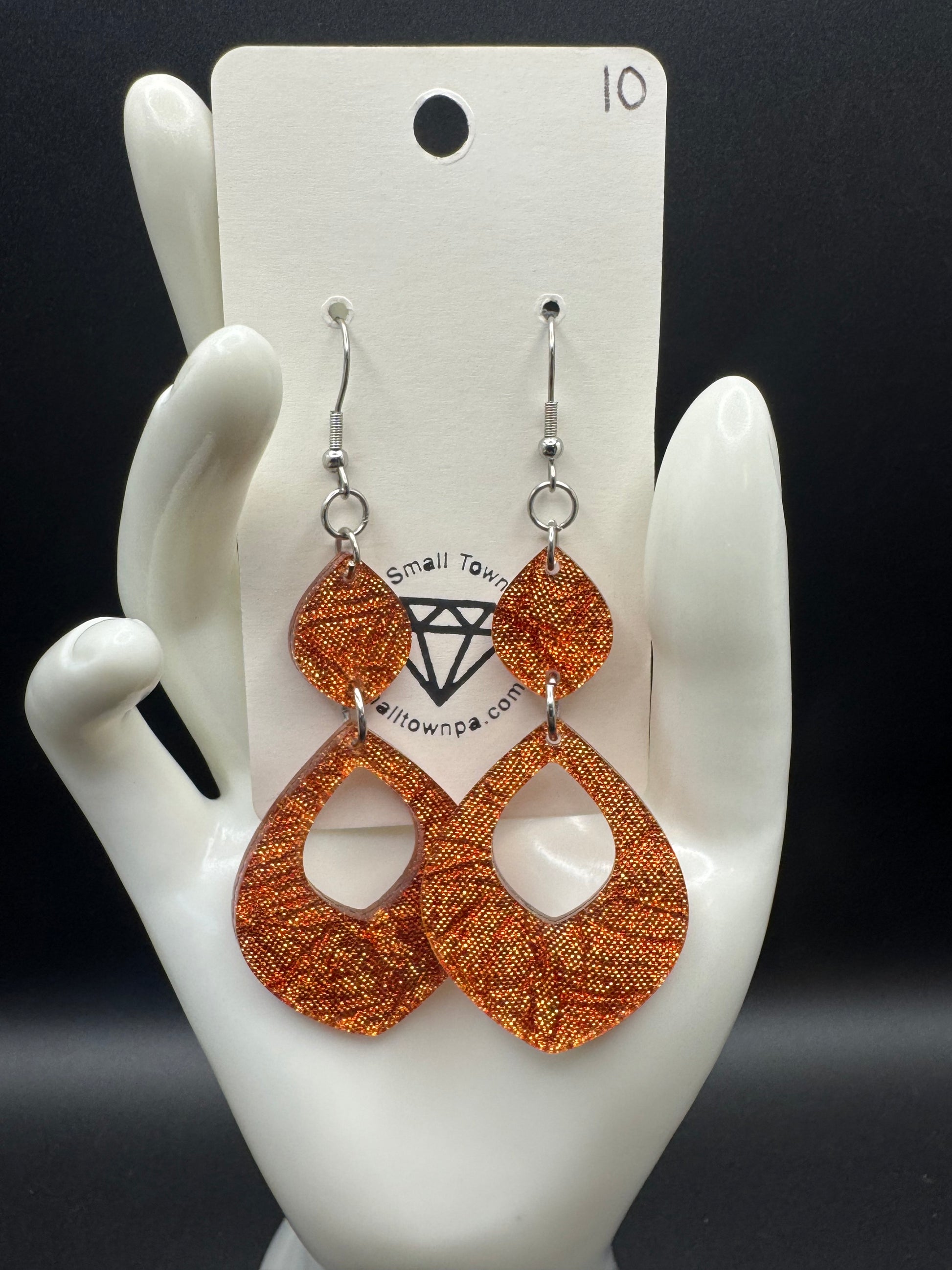 Radiate warmth and elegance with these Orange Shimmer Ovate Dangle Earrings. Featuring a sleek, oval silhouette, these earrings catch the light with every movement, thanks to their subtle shimmer finish.