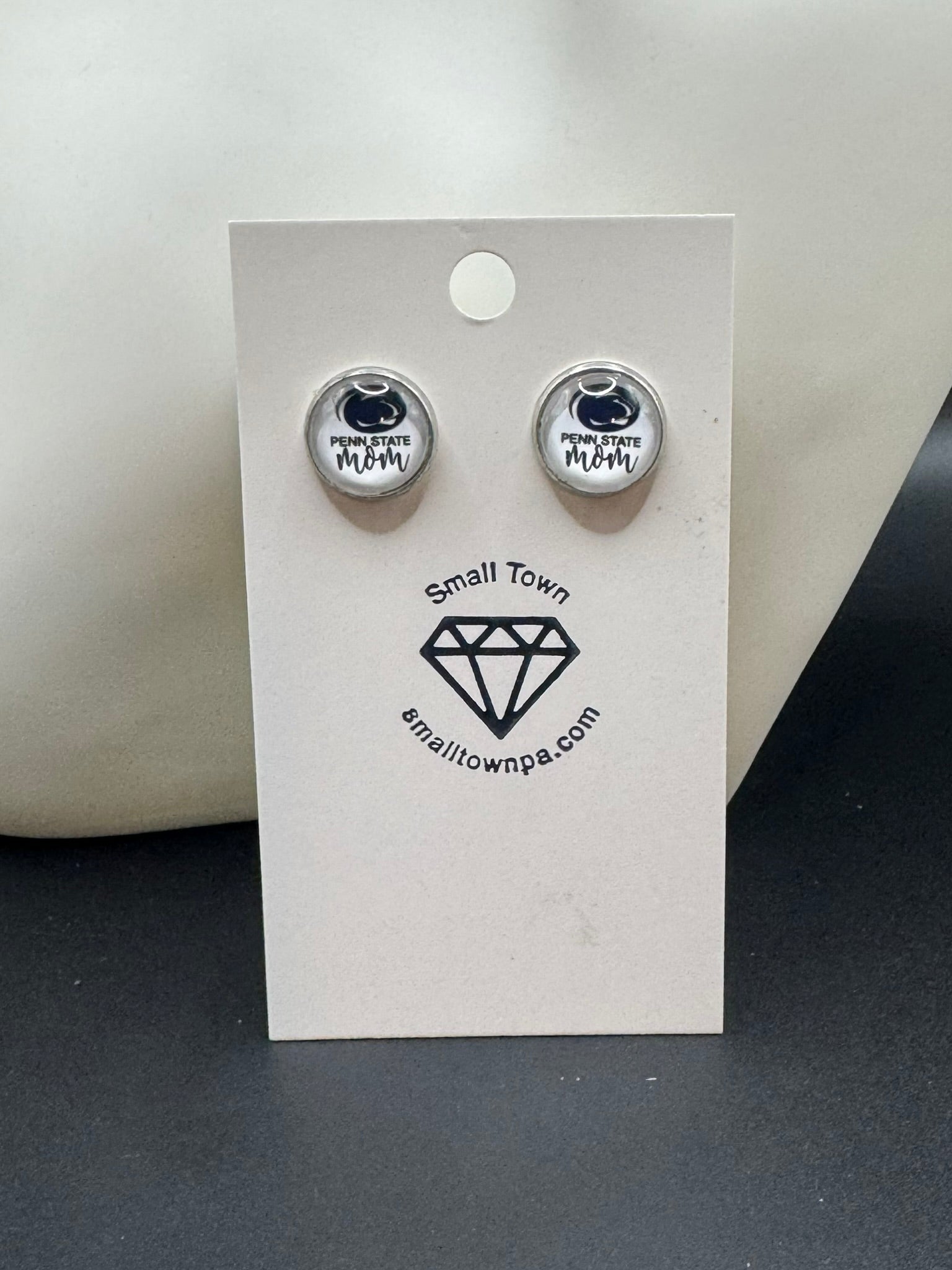 Show your Nittany Lion pride with these elegant Penn State Mom Stud Earrings—the perfect accessory for the proud Penn State mom! Featuring the iconic Penn State logo paired with “Mom” in a clean, classic design, these studs let you celebrate your role and your school spirit in one meaningful piece.