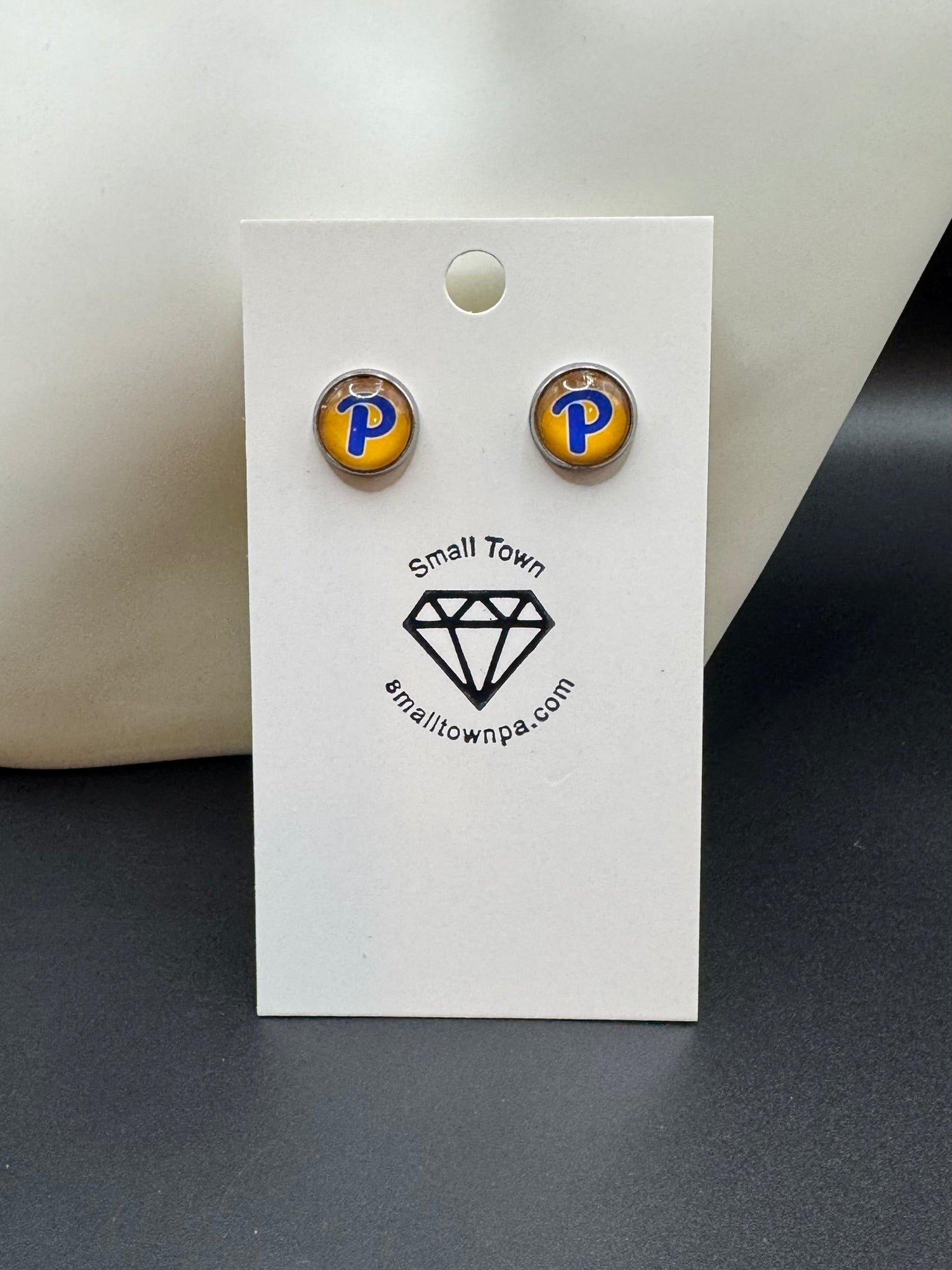 Celebrate your love for Pitt with these stylish Pittsburgh Panthers Stud Earrings! Featuring the official Panthers logo in bold blue and gold, these earrings are a perfect accessory for students, alumni, and die-hard fans alike.