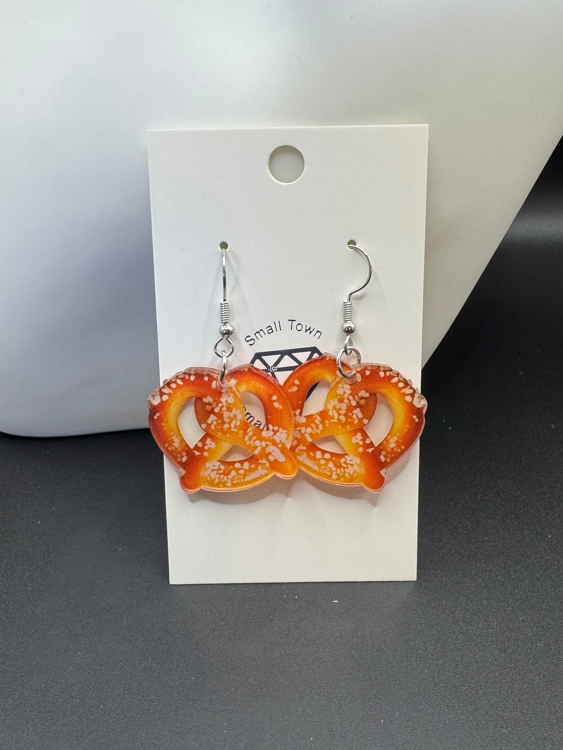 These fun earrings feature golden pretzel charms with just the right sprinkle of sparkle, perfect for snack lovers and statement makers alike. Lightweight and quirky, they dangle with a playful sway that adds personality to any outfit.