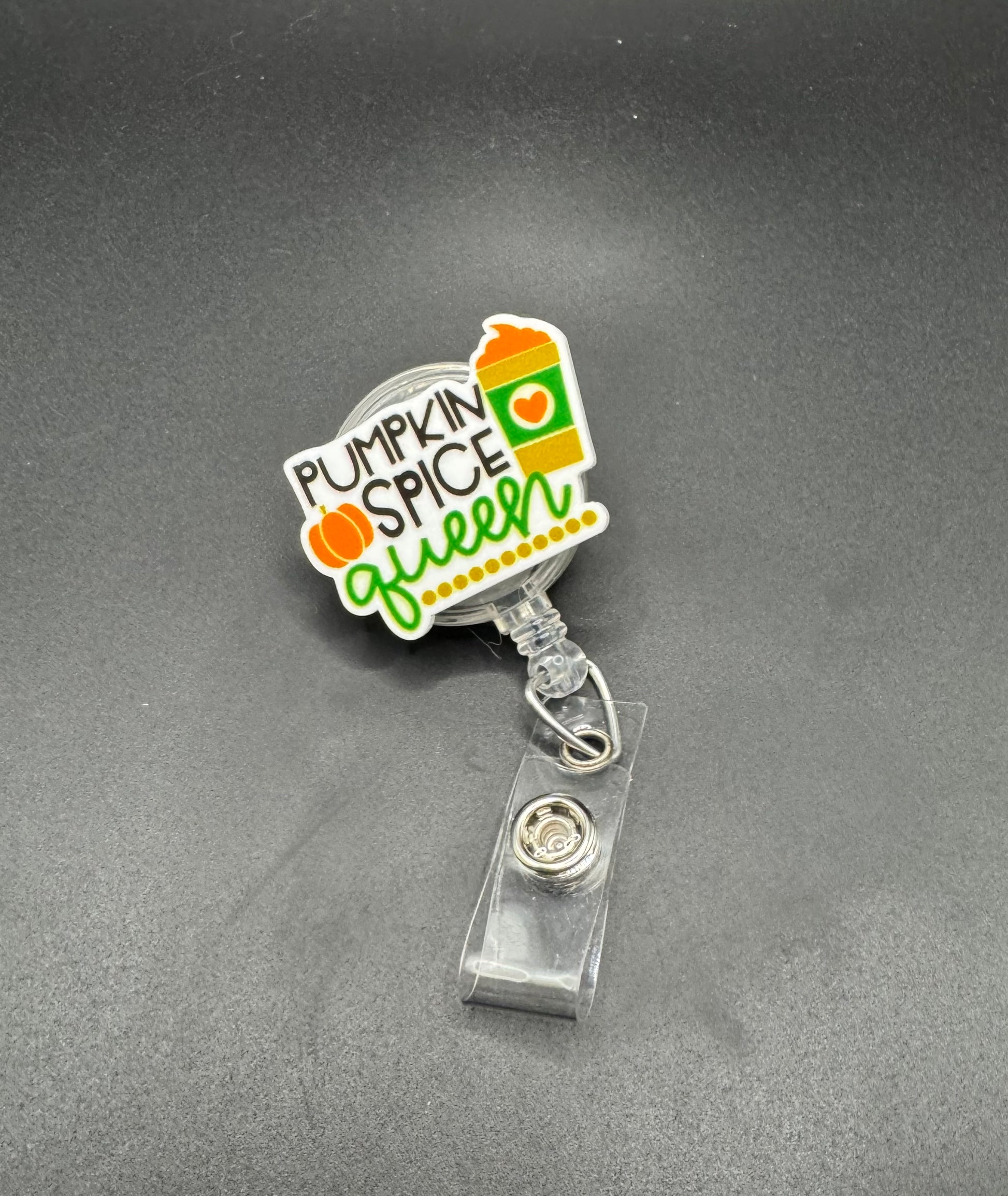 Celebrate fall vibes all year long with the “Pumpkin Spice Queen” Badge Reel! Perfect for lovers of all things pumpkin spice, this fun and festive accessory lets you carry your autumn spirit wherever you go. With a smooth retractable cord and sturdy clip, it’s both practical and full of seasonal sass.