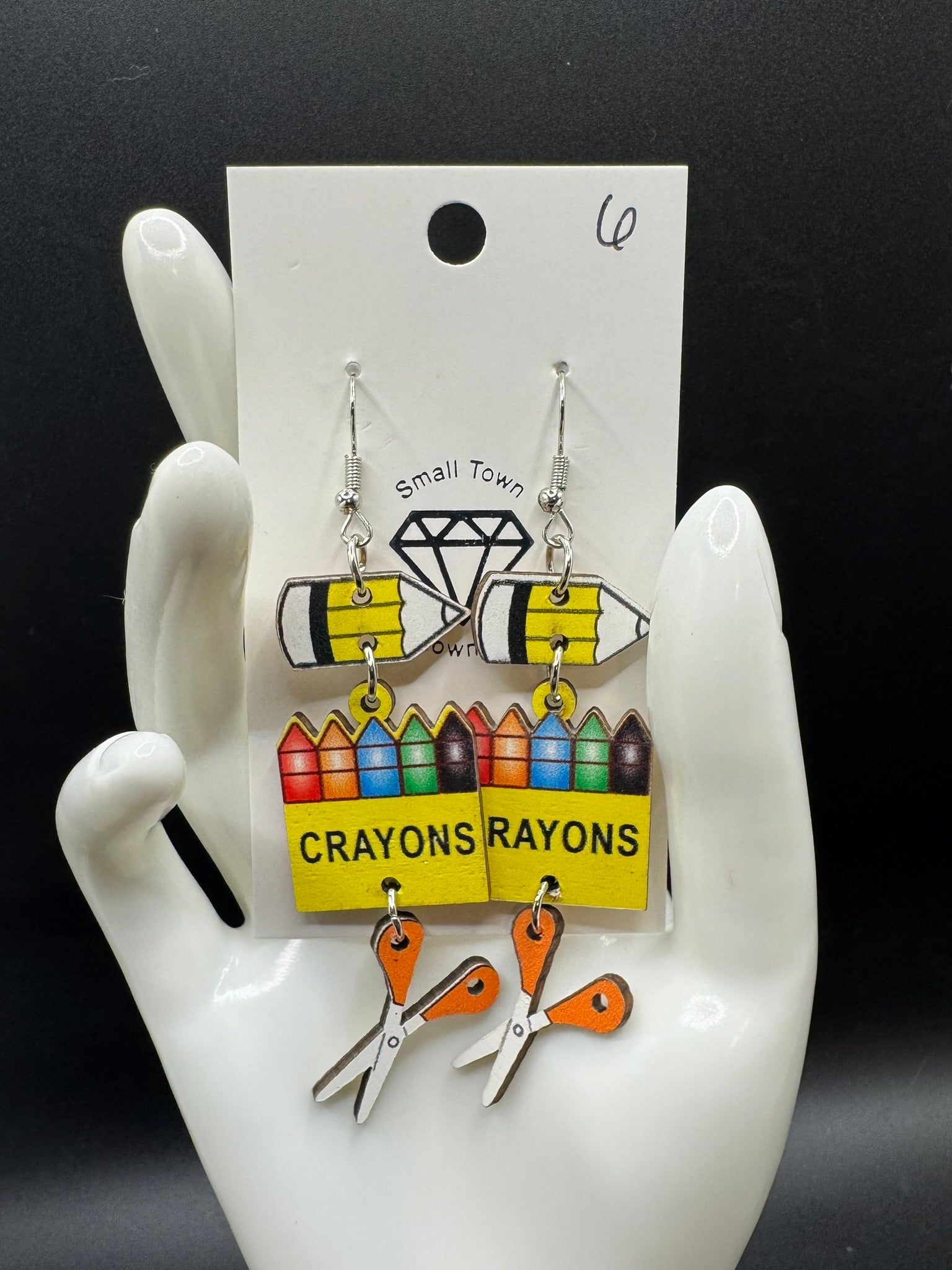 Add a playful pop of creativity to your outfit with these School Supply Dangle Earrings! Featuring a charming mix of tiny scissors, colorful crayons, and a classic yellow pencil, these earrings are a celebration of learning, creativity, and classroom fun.