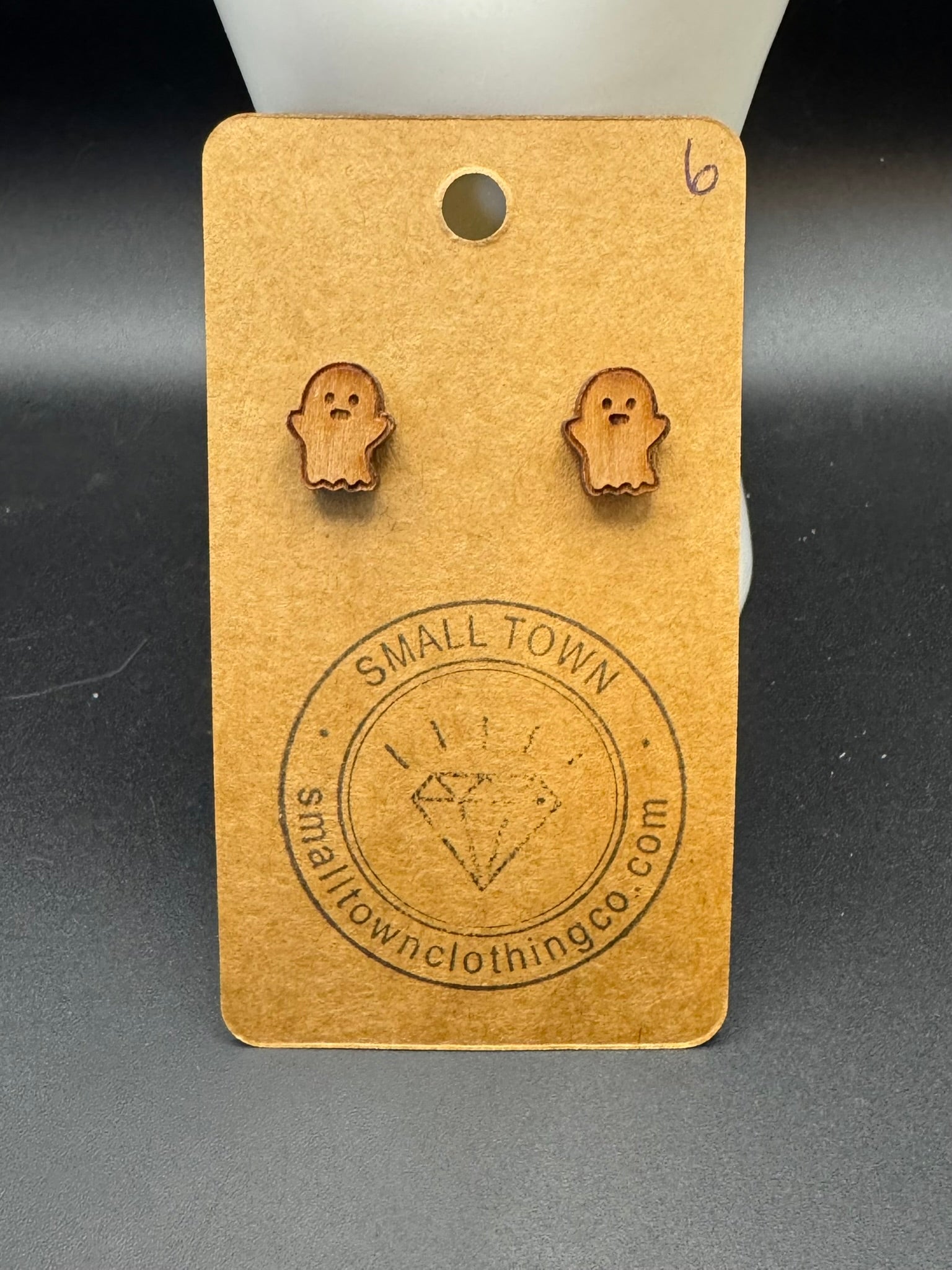 Boo-tifully subtle and full of charm, these Small Wooden Ghost Stud Earrings are the perfect blend of spooky and sweet. Laser-cut from lightweight wood, each tiny ghost features a friendly expression that adds a playful twist to your everyday look — no scares, just smiles!