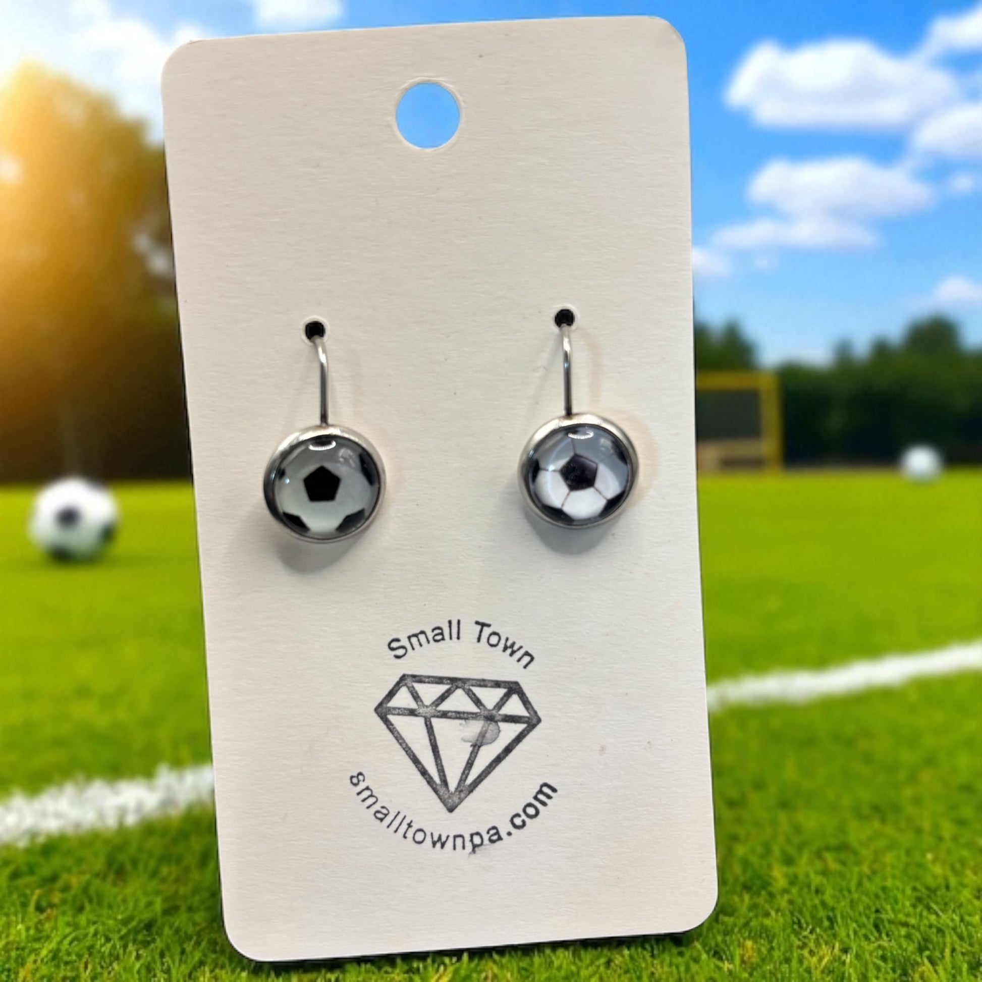 Kick up your style! These soccer ball dangle earrings are perfect for players, fans, and soccer moms alike! Lightweight, fun, and full of team spirit - great for game day or everyday wear.