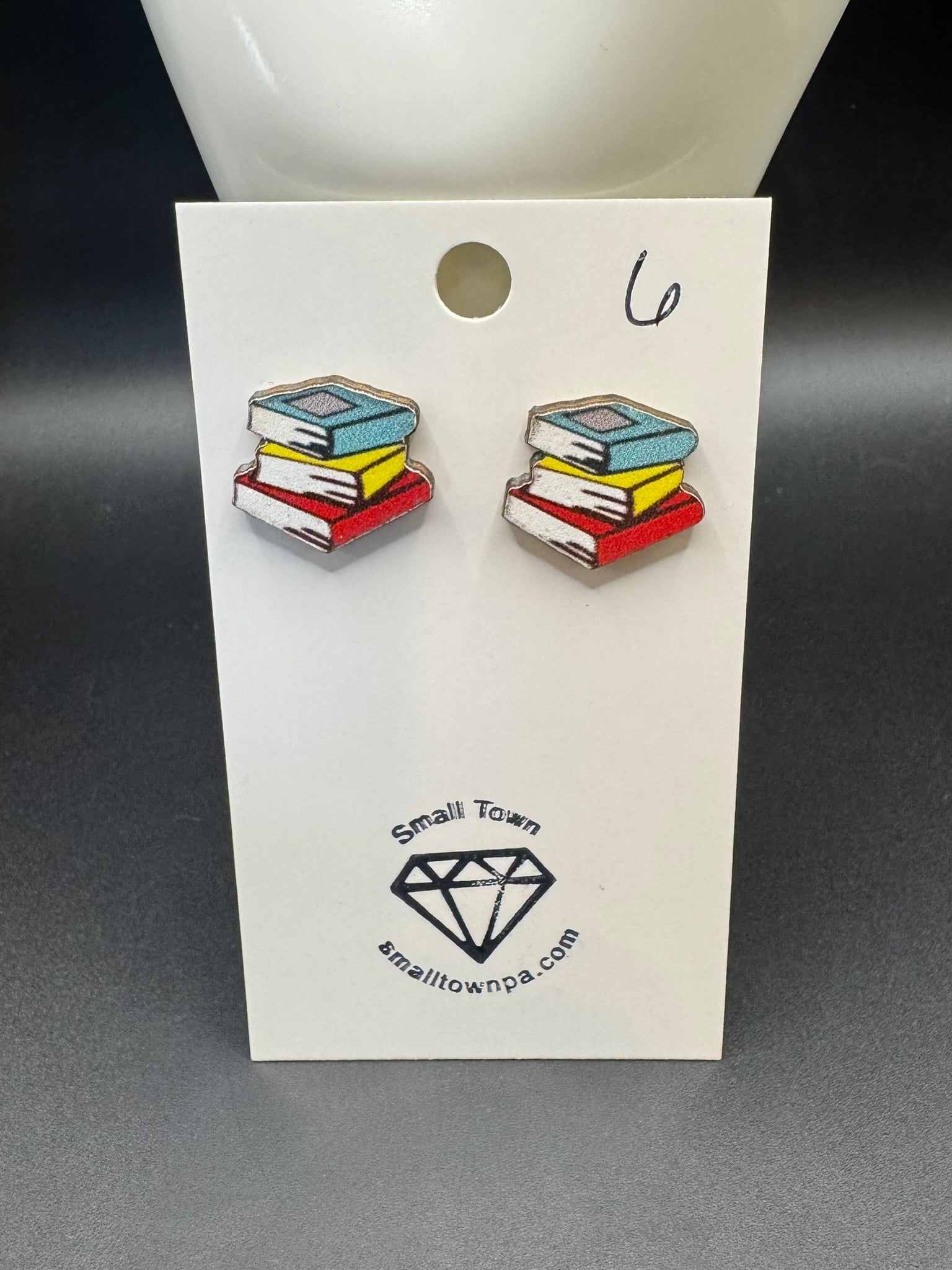 Celebrate your love for reading with these charming Stacked Books Wooden Stud Earrings! Crafted from lightweight wood and engraved with fine detail, these studs feature a miniature stack of books — perfect for librarians, teachers, students, or any book lover. Simple yet full of personality, they bring a touch of literary flair to your everyday look.
