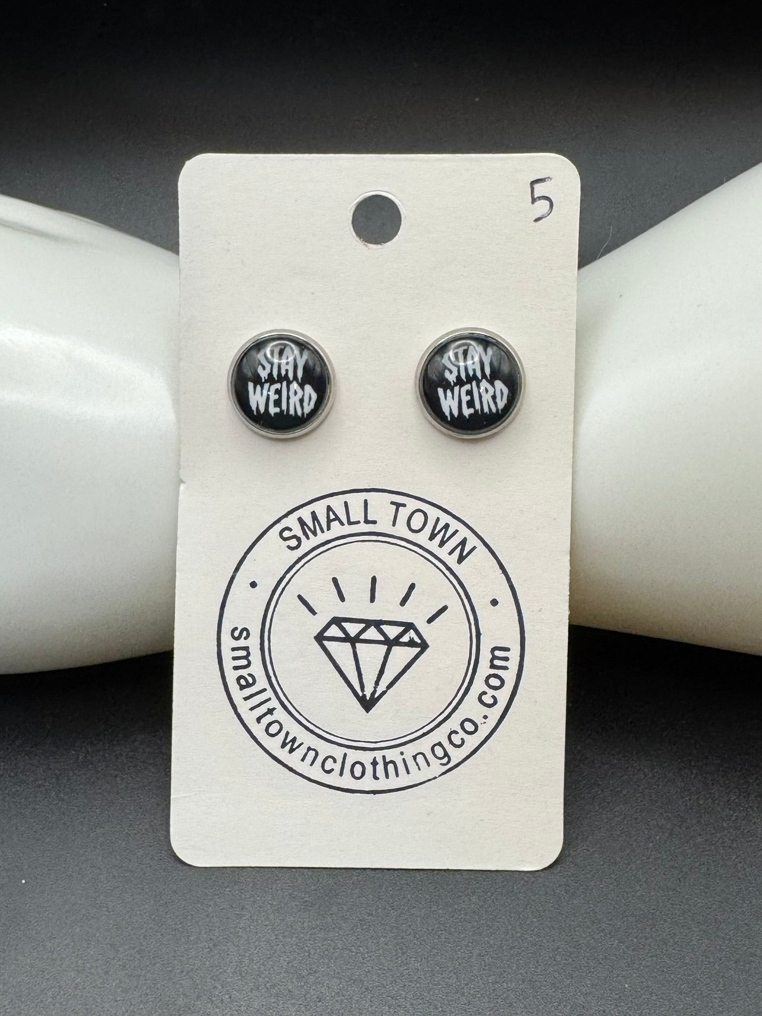Embrace your originality with these "Stay Weird" Black Stud Earrings — a tiny but mighty reminder to be unapologetically you. With sleek black styling and crisp lettering, these earrings add a rebellious edge and a dash of personality to any outfit.