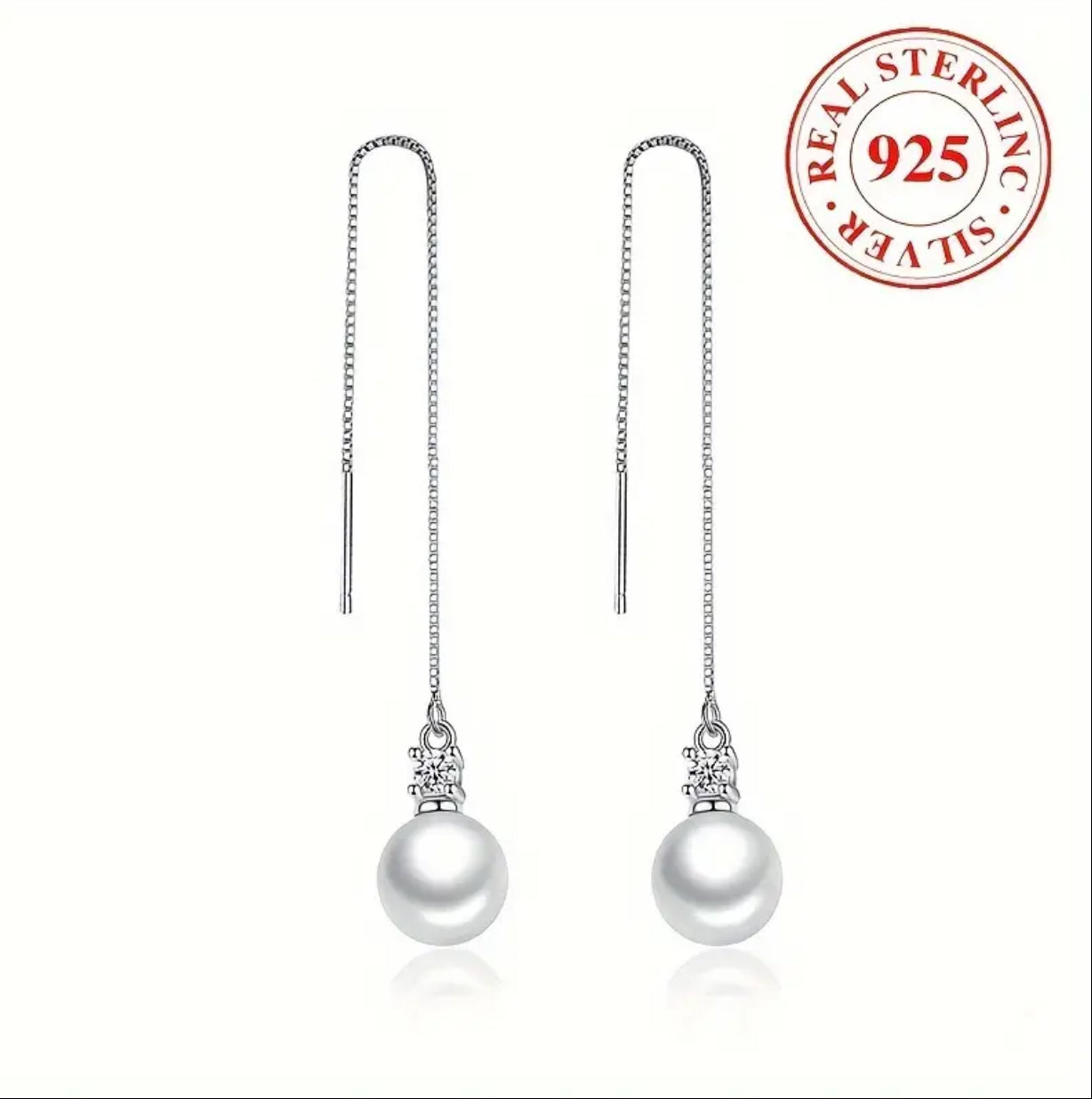 Graceful. Minimal. Timeless. These Sterling Silver Shoulder Duster Earrings with Single Pearl are the embodiment of understated elegance. Each earring features a slender, elongated silver drop that gently brushes the shoulder, ending in a single luminous pearl—adding just the right touch of sophistication and movement.