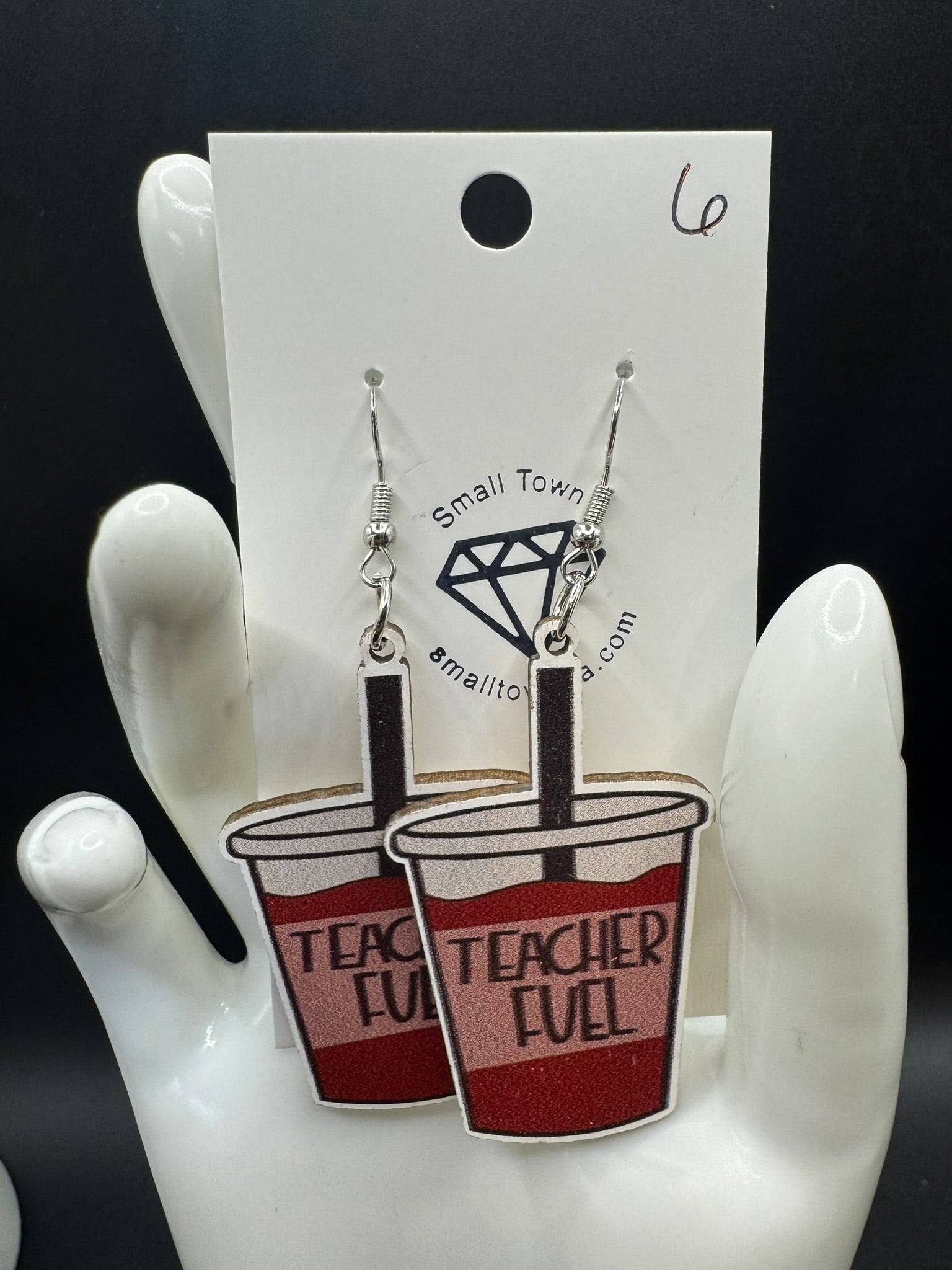 Start the day strong — just like your coffee! These adorable Coffee Cup Dangle Earrings are shaped like your favorite to-go cup and printed with the phrase "Teacher Fuel" right on the front. Perfect for educators who run on caffeine and passion, these earrings are a fun, lighthearted nod to the daily grind of teaching.