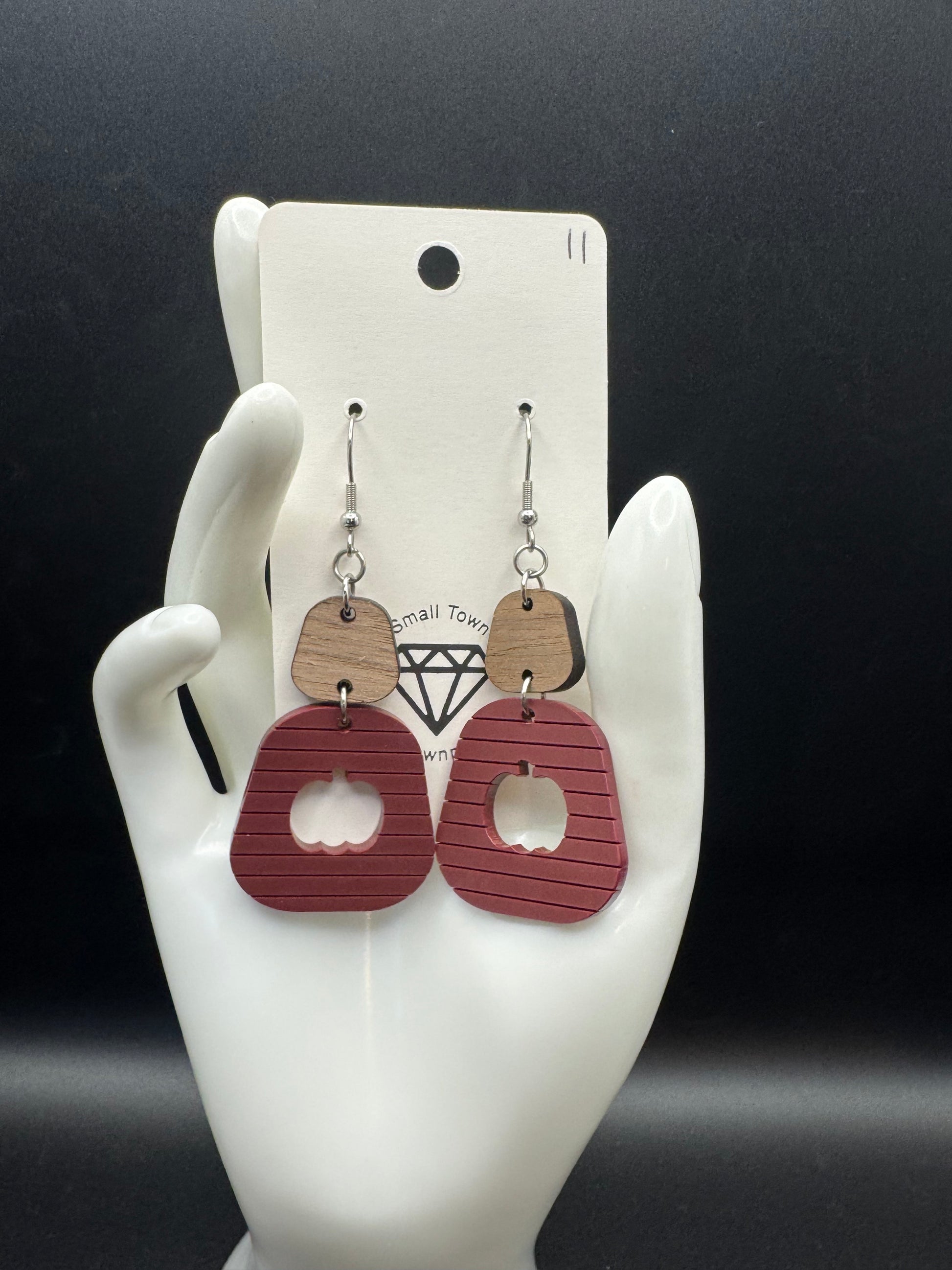 Embrace the cozy charm of fall with these Wood Pumpkin Dangle Earrings. Crafted from lightweight wood, each earring features a cute pumpkin cutout that's perfect for autumn outfits, harvest festivals, or Halloween fun.
